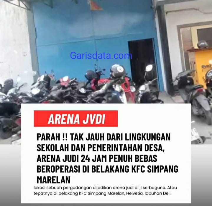 Garisdata.com: Medan – Aktivitas perjudian berkedok permainan ketangkasan kembali mencoreng wilayah Labuhan Deli. Sebuah arena judi yang disebut-sebut sebagai “Las Vegas” beroperasi bebas di Jalan Veteran, tepatnya di belakang KFC Simpang Marelan, Jalan Serbaguna, Desa Helvetia.