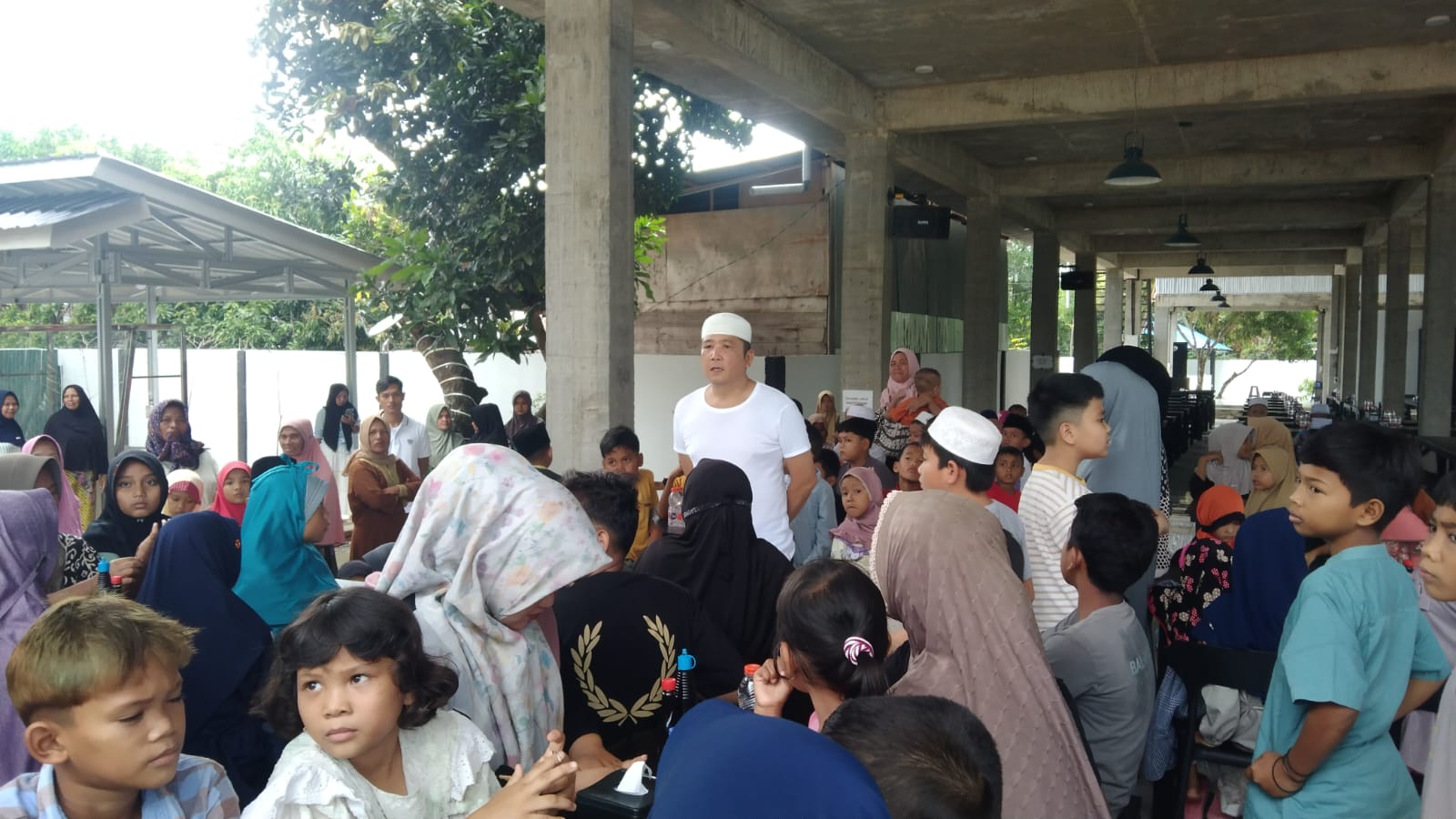 Di tengah kebersamaan itu, Erwin Efendi Lubis hadir bersama keluarga. Ia tidak sekadar menyerahkan santunan, tetapi turut menyambut, menyalami, dan berbincang hangat dengan anak-anak yang hadir. Istri dan anggota keluarga lainnya ikut membantu membagikan bantuan, menciptakan momen yang terasa tulus dan personal.