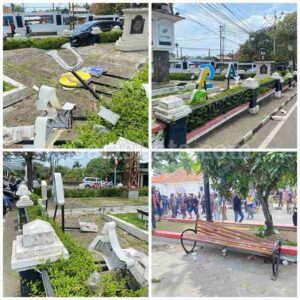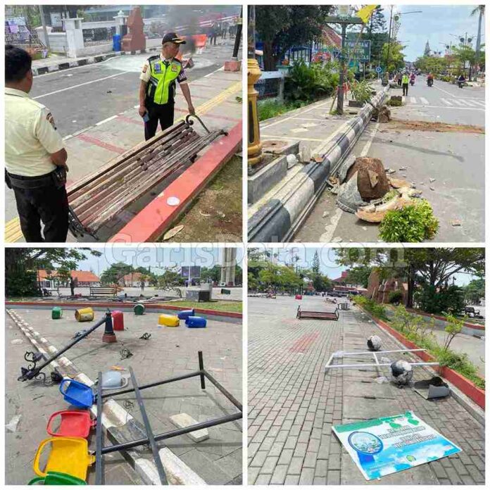 INDRAMAYU,GarisData.com – Aksi demonstrasi yang digelar di kawasan Alun-Alun Indramayu berakhir ricuh dan anarkis. Massa yang merasa diabaikan lantaran tidak ditemui langsung oleh Bupati Indramayu, Lucky Hakim, akhirnya melampiaskan kemarahan dengan merusak sejumlah fasilitas umum,Pada Hari Senin (02/04/2026).