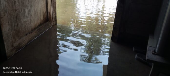 Madina, Sumut – garisdata.com Hujan yang mengguyur Desa Panggautan Kecamatan Natal Kabupaten Mandailing Natal (Madina) Sumatera Utara (Sumut) dalam beberapa hari ini mengakibatkan banjir di pemukiman warga. Sabtu,(22/11/2025)