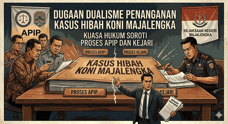 MAJALENGKA,GarisData.com – Proses penanganan perkara dugaan tindak pidana korupsi pengelolaan dan penggunaan dana hibah KONI Kabupaten Majalengka untuk anggaran tahun 2024-2025 kini menuai sorotan. Hal ini lantaran adanya dugaan dualisme penanganan atau sidik ganda yang dilakukan secara bersamaan oleh Aparat Pengawasan Intern Pemerintah (APIP) yakni Inspektorat Kabupaten Majalengka dan Aparat Penegak Hukum (APH) yakni Kejaksaan Negeri Majalengka.