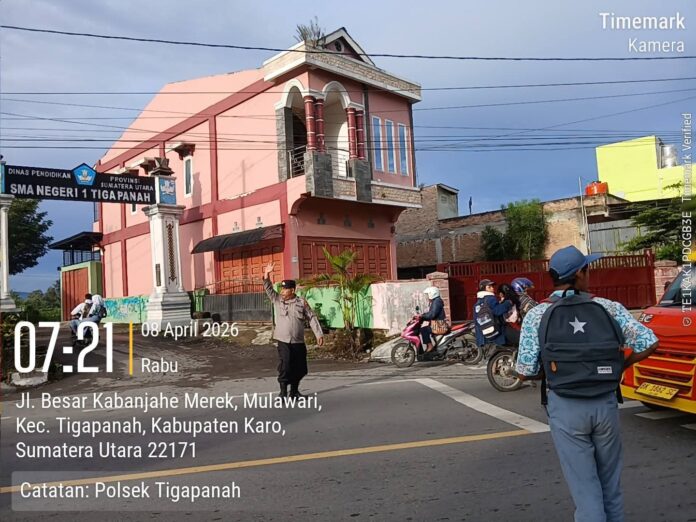 KARO – Jajaran Polres Karo mengerahkan personel untuk melaksanakan kegiatan strong point atau pengaturan lalu lintas di sejumlah titik rawan kemacetan, Rabu (8/4/2026). Kegiatan yang dimulai pukul 07.00 WIB ini difokuskan pada pengamanan aktivitas masyarakat dan pelajar saat jam sibuk pagi hari.