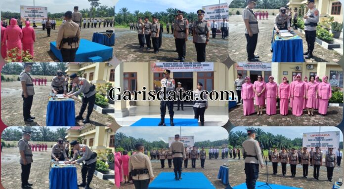 PALAS – Kapolres Padang Lawas (Palas), AKBP Dodik Yuliyanto, SIK, memimpin upacara pelantikan serta serah terima jabatan (sertijab) sejumlah Pejabat Utama (PJU) di halaman Mako Polres Palas, Senin (20/4/2026).