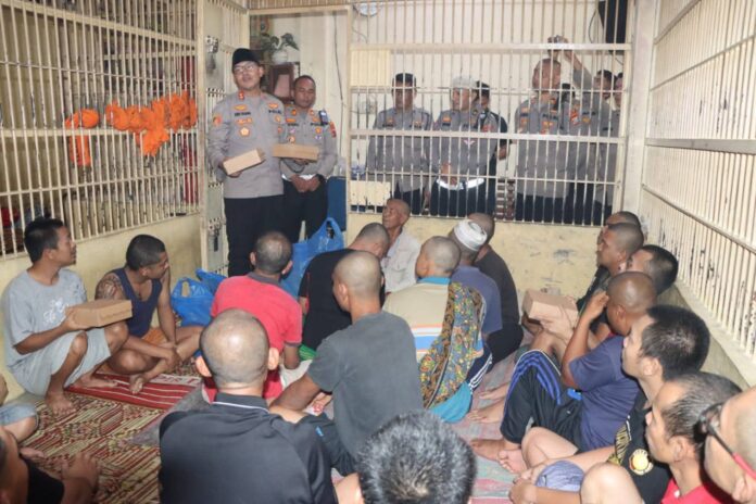 Garisdata.com | Karo,Sumut – Wujud kepedulian di bulan suci Ramadan, Kapolres Tanah Karo, AKBP Pebriandi Haloho, S.H., S.I.K., M.Si, memberikan makan malam tambahan kepada seluruh tahanan di Rumah Tahanan Polisi (RTP) Polres Tanah Karo, Sabtu(28/2) pukul 18.45 WIB.