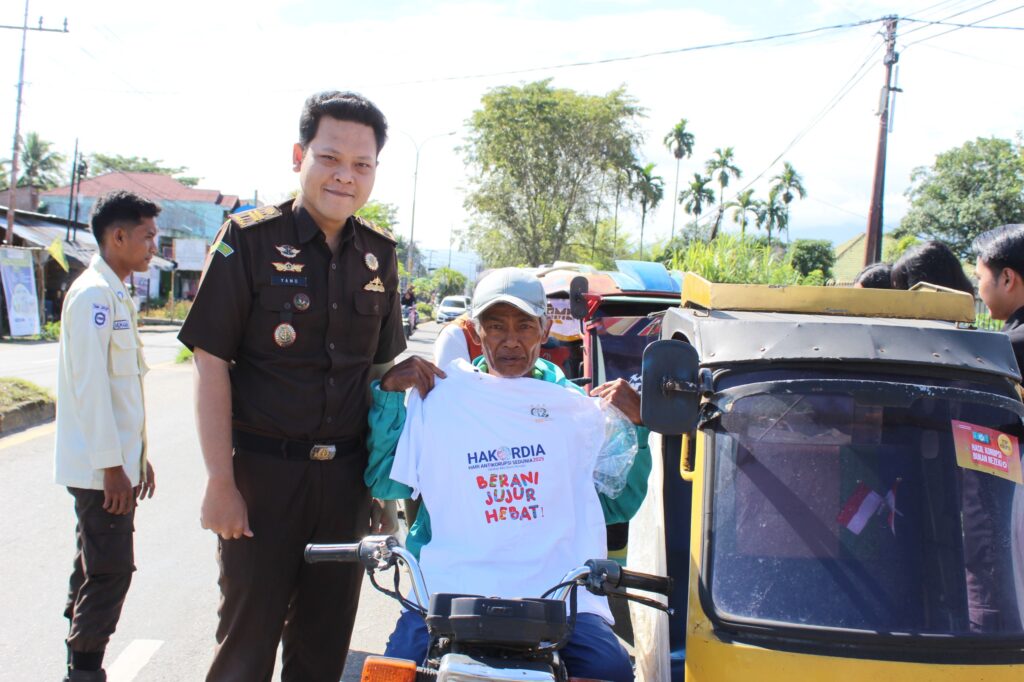 II. Kampanye Anti Korupsi Melalui Pembagian Stiker dan Kaos Melanjutkan agenda peringatan, pada pukul 09.30 WIB Kejaksaan Negeri Mandailing Natal melaksanakan Pembagian Stiker dan Kaos Anti Korupsi kepada pengguna jalan di depan kantor Kejaksaan. Kegiatan ini bertujuan memperluas penyebaran pesan integritas serta mengajak partisipasi publik dalam pengawasan anggaran negara.Kepala Seksi Intelijen Kejaksaan Negeri Mandailing Natal, Jupri Wandy Banjarnahor, S.H., M.H., menegaskan bahwa peran masyarakat sangat dibutuhkan, terutama dalam masa pemulihan pascabencana.Kegiatan ini merupakan upaya preventif yang terus kami lakukan, terutama setelah Madina terdampak bencana. Kita memahami bahwa dalam situasi kedaruratan selalu terdapat anggaran pembangunan fisik maupun bantuan sosial.