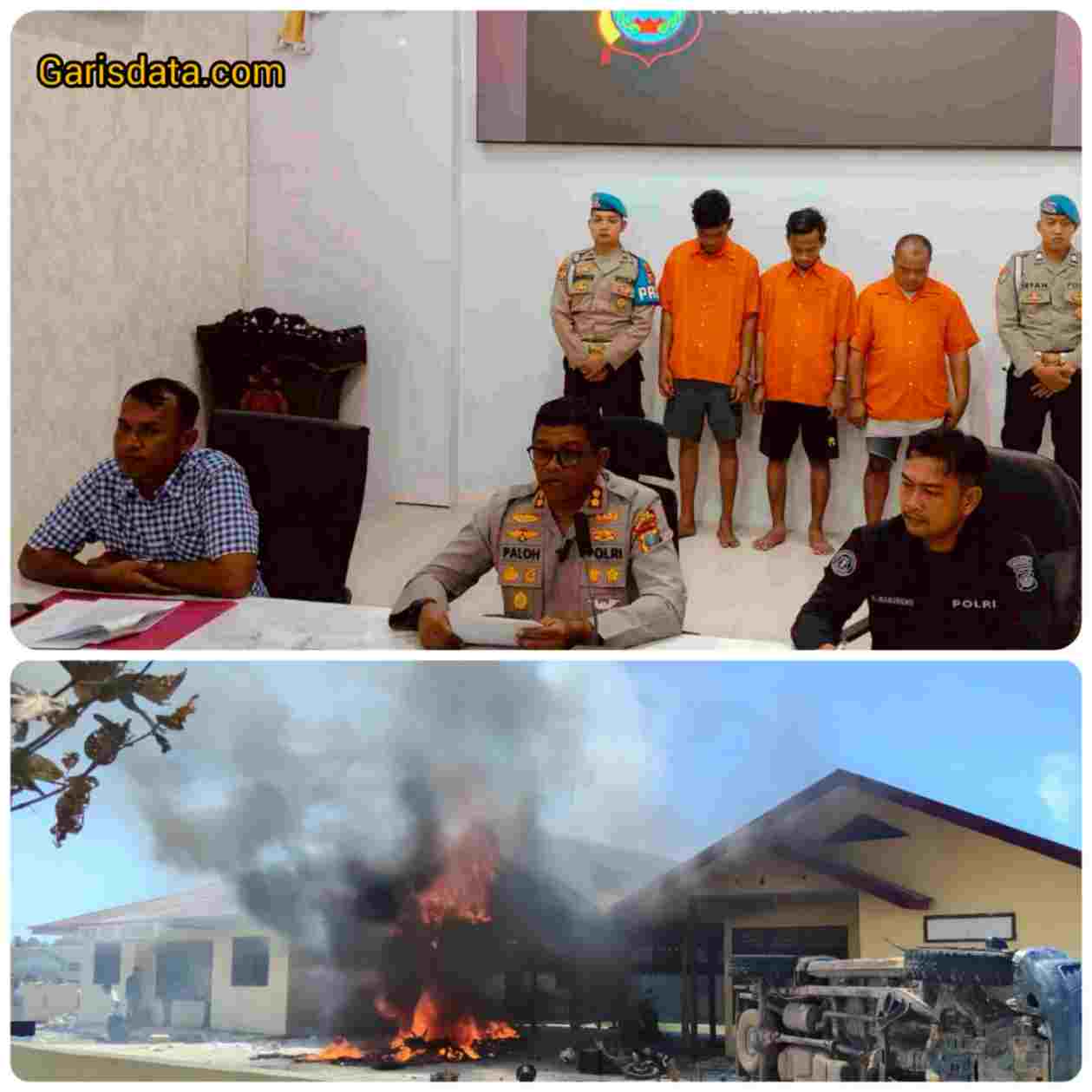 Mandailing Natal, Sumatera Utara Garisdata.com – Kepolisian Resort (Polres) Mandailing Natal (Madina) bersama Kepolisian Daerah (Polda) Sumatera Utara (Sumut) menetapkan tiga orang sebagai tersangka dalam kasus dugaan tindak pidana pembakaran, pencurian, penghasutan, serta kekerasan secara bersama-sama terhadap barang milik negara yang terjadi di Mako Polsek Muara Batang Gadis, Kecamatan Muara Batang Gadis, Kabupaten Mandailing Natal, SumateraUtara.