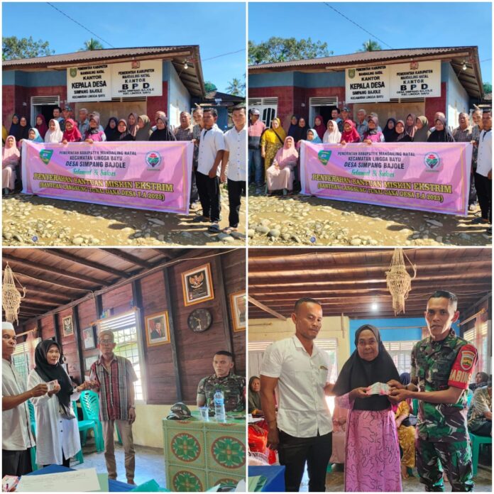MANDAILING NATAL — Garisdata.com Pemerintah Desa Simpang Bajole menyalurkan Bantuan Langsung Tunai (BLT) Dana Desa kepada 24 Keluarga Penerima Manfaat (KPM), sekaligus menyalurkan berbagai insentif kepada unsur pelayanan dan sosial kemasyarakatan, Rabu, 31 Desember 2025. Kegiatan berlangsung di Kantor Desa Simpang Bajole hingga selesai dengan pengawalan dan pengawasan lintas unsur.