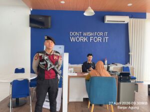 Tulang Bawang – Pemandangan luar biasa tersaji di koridor ekonomi Kabupaten Tulang Bawang pada Senin pagi (27/04/2026). Bak benteng berjalan yang tak tertembus, personel Unit Pamobvit Sat Samapta Polres Tulang Bawang melakukan mobilisasi besar-besaran untuk memastikan seluruh sektor perbankan berada dalam perlindungan mutlak negara.