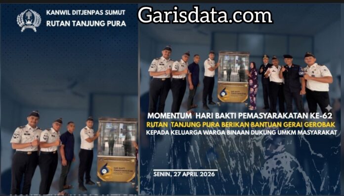 Garisdata.com | Tanjung Pura – Rumah Tahanan Negara (Rutan) Kelas IIB Tanjung Pura membagikan gerobak usaha kepada keluarga warga binaan yang berprofesi sebagai pedagang makanan pada Senin (27/4/2026). Program ini bertujuan untuk mendorong kemandirian ekonomi keluarga selama warga binaan menjalani masa pemidanaan.