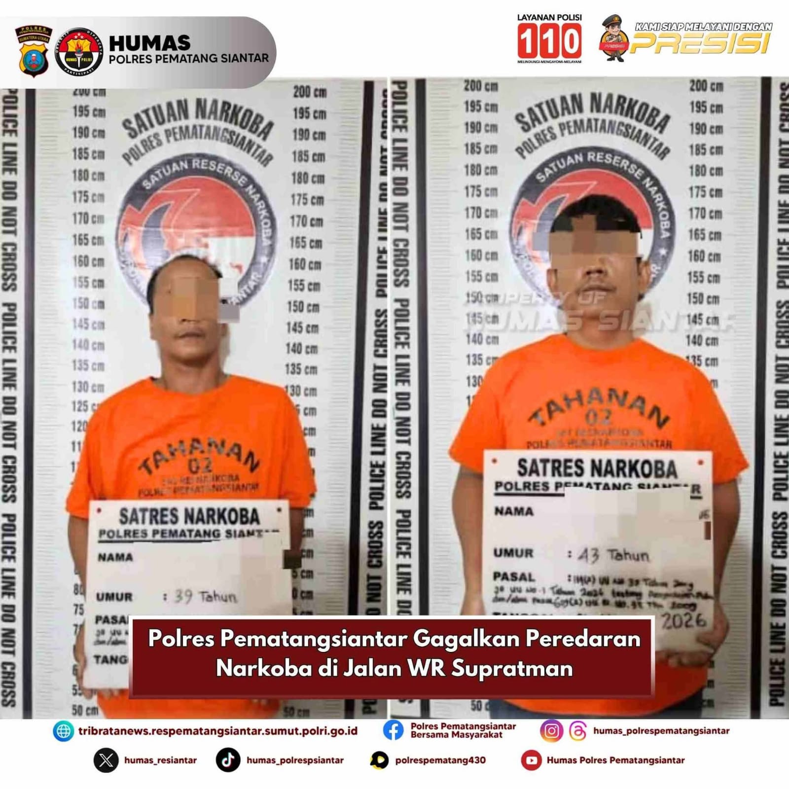 Dalam operasi tersebut, polisi mengamankan dua orang pria berinisial NS (44), warga Dusun Silaban, Kabupaten Serdang Bedagai, dan RBPP (39), warga Jalan Dalig Raya, Kota Pematangsiantar.