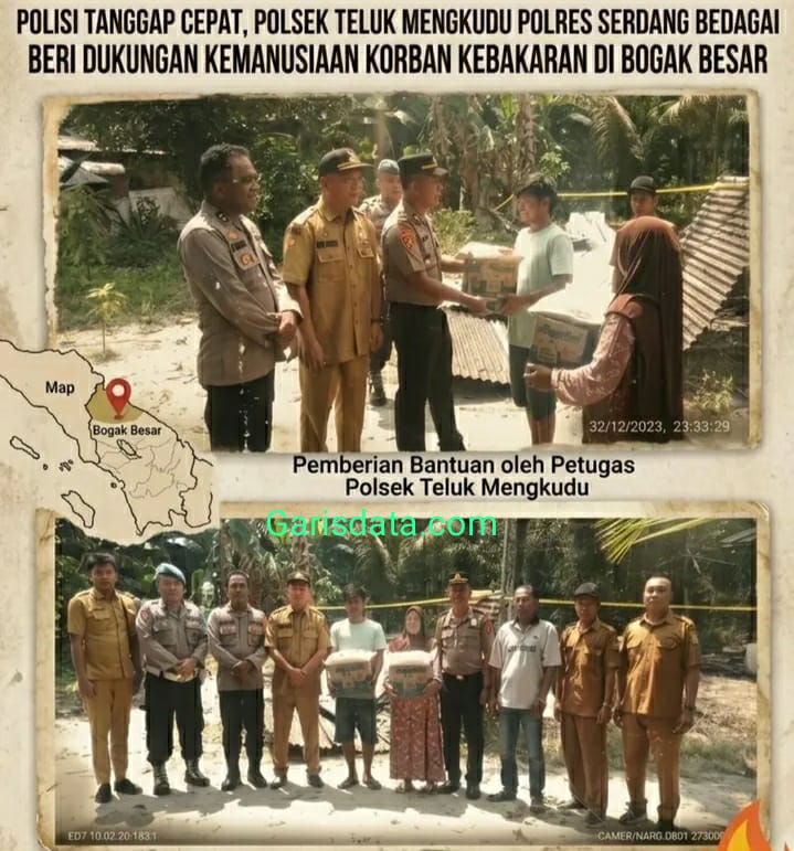 SERDANG BEDAGAI – Polsek Teluk Mengkudu menyalurkan bantuan sosial berupa sembako kepada warga yang terdampak musibah kebakaran di Dusun I, Desa Bogak Besar, Kecamatan Teluk Mengkudu, Kabupaten Serdang Bedagai, Senin (20/4) pukul 11.00 WIB.