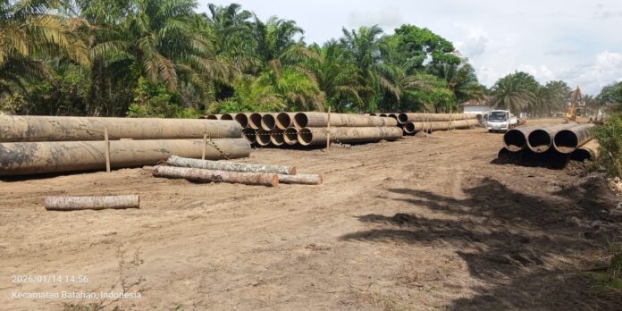 Terlihat dalam foto tersebut bahwa kontrak bernomor: HK 0201/APBN -MYC /Bb 2 – WIL 3.3 PPK- 3.3/ 01/2025. Volume: 120 M, Biaya: Rp.82.687.342.000 Sumber Dana: APBN MYC TA 2025/2026(SBSN) Pelaksana’an: 28 Nopember 2025 s/d 31 Desember 2026. Pelaksana: PT. Bahana Krida Nusantara, Konsultan Supervisi: PT. Gita Cipta Siagayasa.