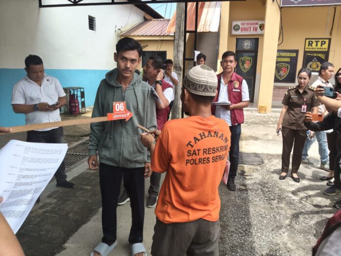 Rekonstruksi berlangsung di halaman Satreskrim Polres Serdangbedagai itu memperagakan sebanyak 10 adegan dengan menghadirkan delapan orang saksi, Rabu (15/4/2026) sekitar pukul 11.00.