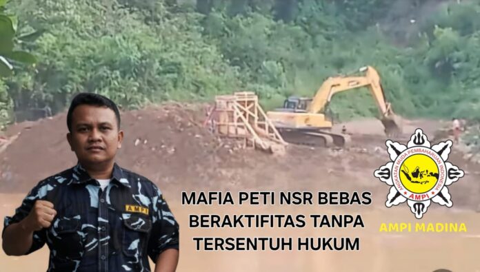 Berdasarkan laporan masyarakat yang masuk kepada SATMA AMPI Madina, aktivitas PETI diduga kembali berjalan, dan disebut-sebut melibatkan pihak yang dikenal publik diduga berinisial *NS LBS” (biasa dijuluki “Siang Batang Natal”), dan oknum yang diduga berperan sebagai koordinator lapangan berinisial O.S. (Oks Ampung Siala).