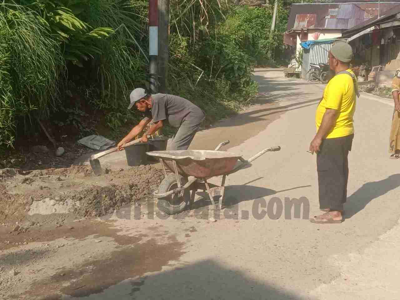 Di tengah kondisi tersebut, Abdul Wahid Siregar bersama masyarakat bergerak melakukan pengecoran bahu jalan dan penutupan lubang di sejumlah titik rawan.