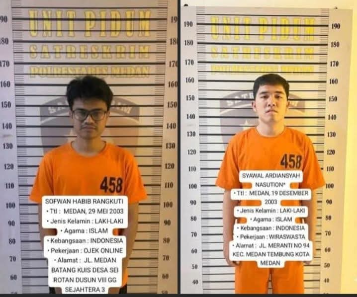 Identitas kedua tersangka diketahui berinisial SHR (19), warga Jalan Medan-Batang Kuis, Deli Serdang, dan SAN (19), warga Kecamatan Medan Tembung. Keduanya ditangkap di lokasi persembunyian yang berbeda setelah sempat buron.