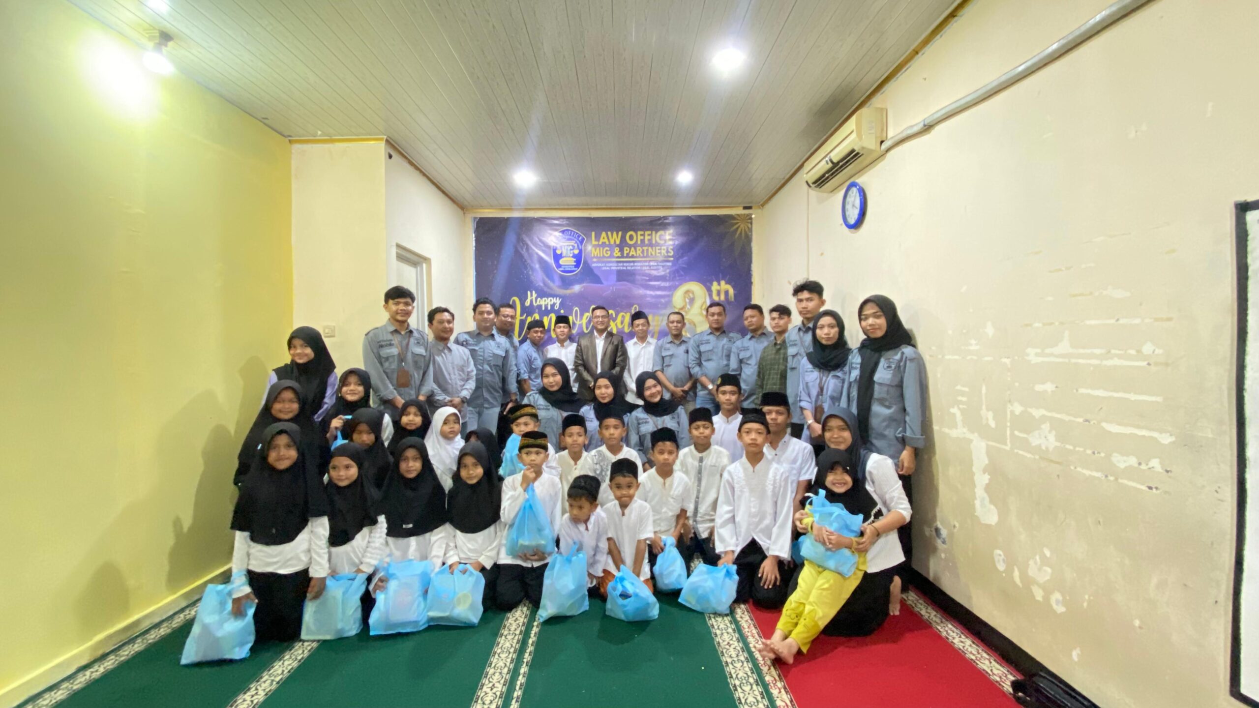 Peringatan Anniversary ke-3 Tahun Law Office Mig & Partner’s dilaksanakan pada Sabtu, 24 Januari 2026, pukul 13.00 WIB hingga selesai, bertempat di Yayasan Panti Asuhan Karya Amal Mulia Indonesia, Perumahan Sudirman Indah Blok A2 No. 9, Kelurahan Tigaraksa, Kabupaten Tangerang, Provinsi Banten.