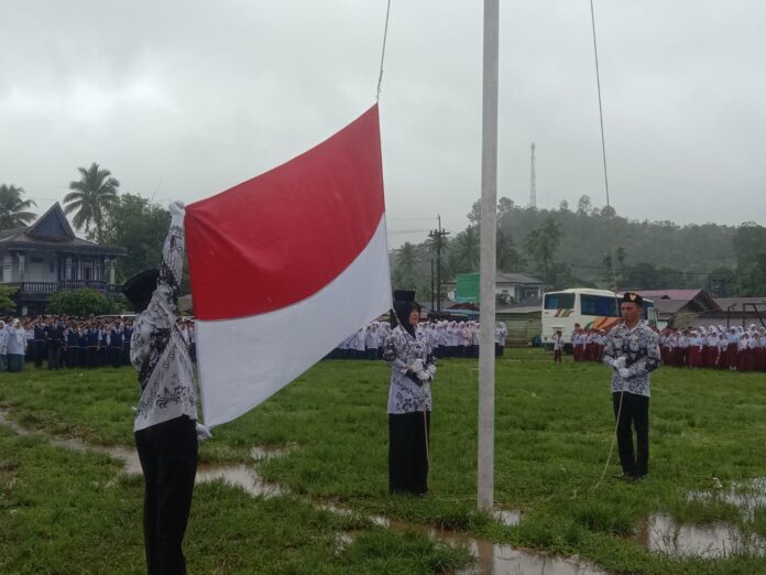 Garisdata. com l Mandailing Natal – Upacara Peringatan Hari Guru Nasional (HGN) ke-80 di Kecamatan Lingga Bayu, Kabupaten Mandailing Natal, berlangsung penuh khidmat dan haru meski sejak pagi wilayah tersebut diguyur hujan dengan intensitas sedang hingga lebat. Ratusan guru dan pelajar tetap berdiri tegak di Lapangan Hijau depan Kantor Camat Lingga Bayu, Selasa (25/11/2025), menunjukkan dedikasi dan rasa bangga mereka terhadap profesi pendidik.
