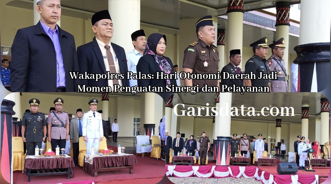 PADANG LAWAS – Wakapolres Padang Lawas Kompol Sugianto menghadiri Upacara Peringatan Hari Otonomi Daerah (Otda) ke-30 Tingkat Kabupaten Padang Lawas di Halaman Kantor Bupati setempat, Senin (27/4/2026).